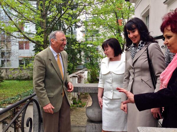 Gostiteljica damskega prog. Tanja Pečar s soprogo PR Češke rep. Ivano Zemanovo pred Plečnikovo hišo - Vilo Prelovšek.pic.twitter.com/xaWnhB2O9L