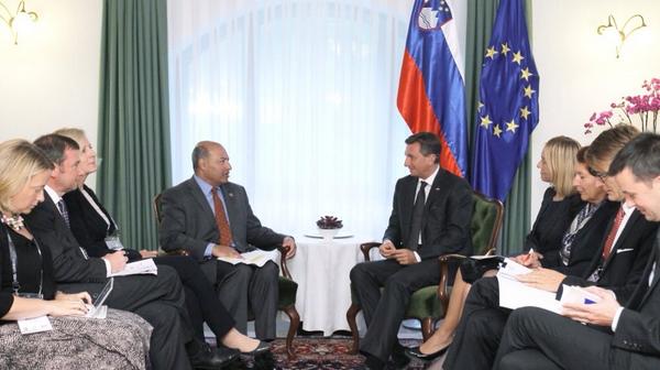 Predsednik Pahor je na Bledu sprejel predsednika Evropske banke za obnovo in razvoj Suma Chakrabartija. #Bled14pic.twitter.com/29U3e6l5aQ