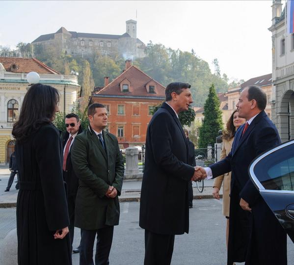 PRS Pahor in gospa Tanja Pečar sta na Kongresnem trgu sprejela in pozdravila PR Albanije B. Nishaniija s soprogo.pic.twitter.com/OEn8QlVZcH