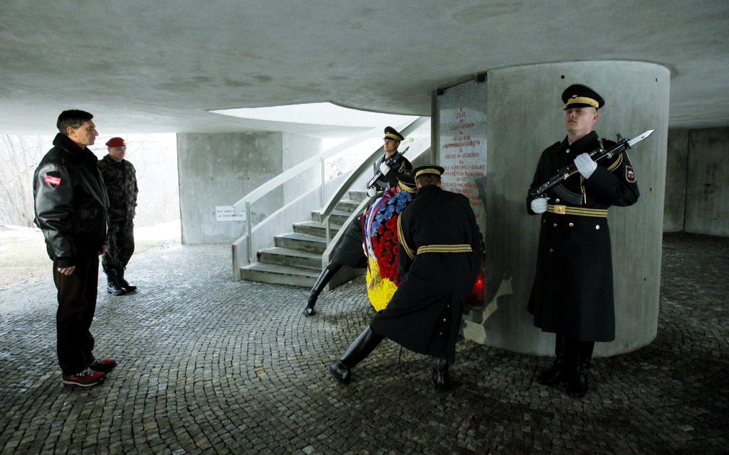 Predsednik republike Borut Pahor je ob začetku prireditve položil venec pred spomenik padlim v dražgoški bitki.pic.twitter.com/1tdpdVIkUF