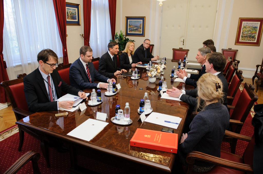 Predsednik RS Borut Pahor je sprejel ministra za zunanje zadeve Velike Britanije Philipa Hammonda. @PHammondMPpic.twitter.com/BgqzE0w8L2