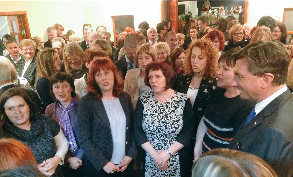 Pevski zbor učiteljskega zbora OŠ Sladki Vrh je po proslavi ob 20.obletnici Občine Šentilj spontano zapel nekaj pesmipic.twitter.com/o4wXyH59A6