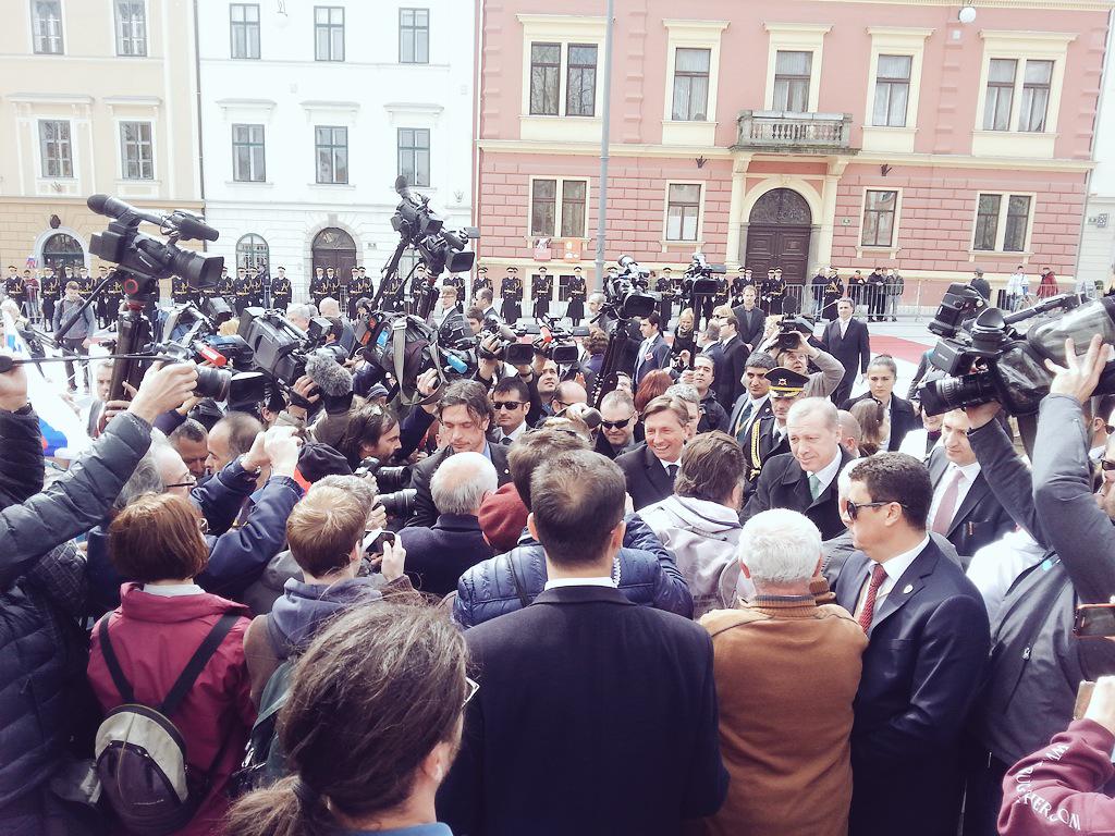 Množica pozdravila PR Slovenije in PR Turčije @RT_Erdogan na Kongresnem trgu v Ljubljani.pic.twitter.com/5nI6yp4bnA