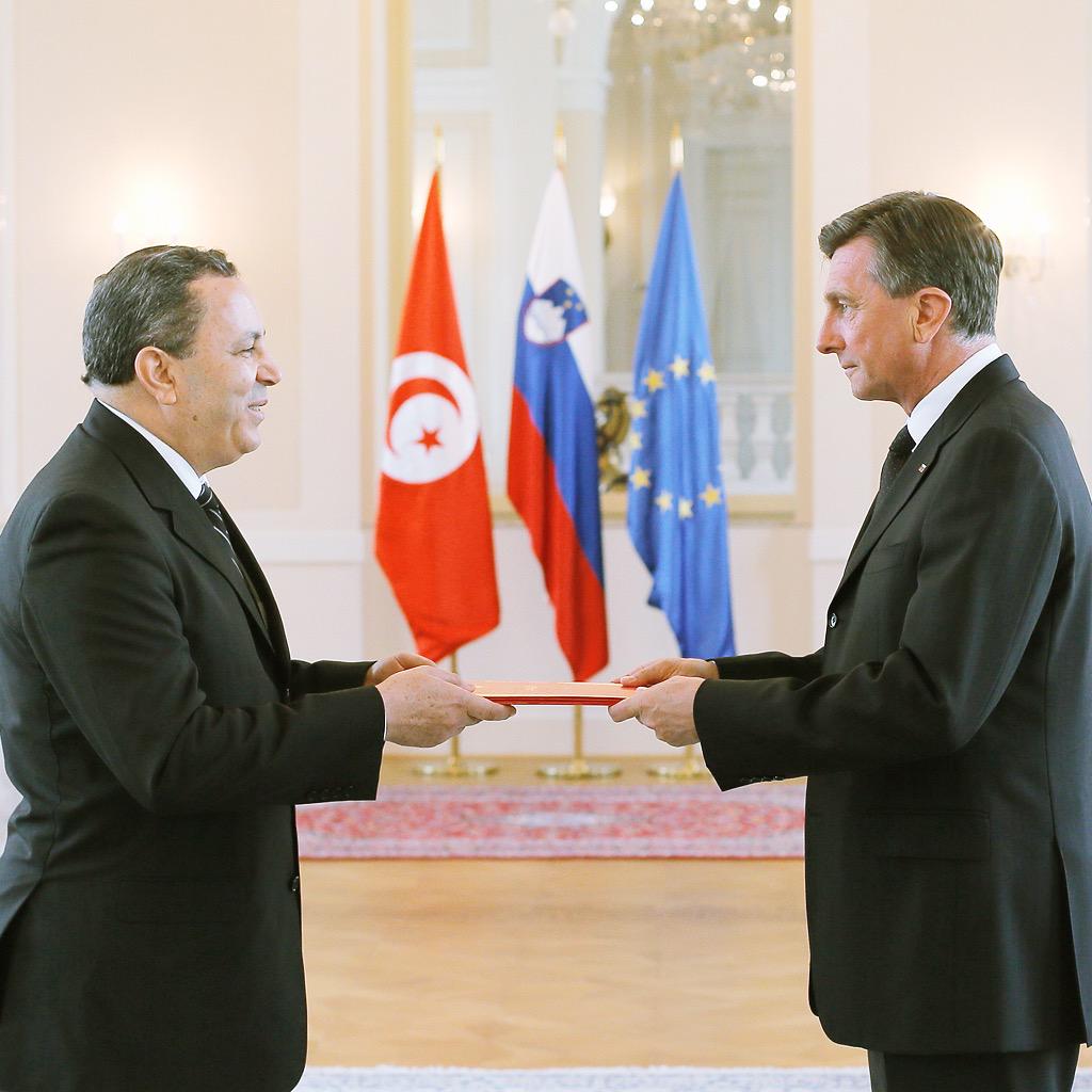 Ob Dnevu Afrike je novoimenovani veleposlanik Republike Tunizije Ghazi Jomaa PRS Pahorju predal poverilno pismo.pic.twitter.com/42CWJGOV8S