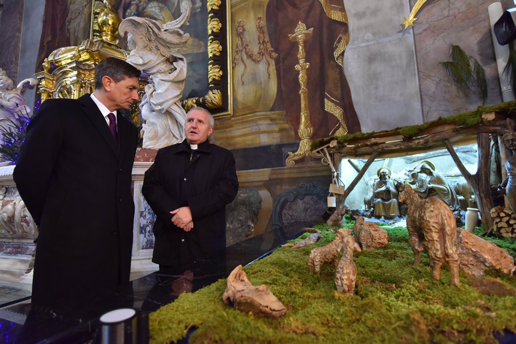 Predsednika je sprejel nadškof Zore, ki si je jaslice z njim tudi ogledal, predstavil pa jih je stolni župnik Plut.pic.twitter.com/8Bzhb5SihE