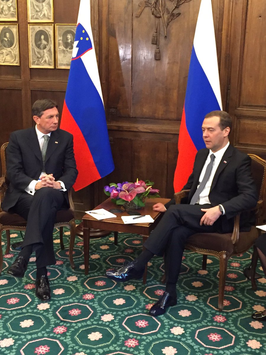 Srečanje predsednika republike Boruta Pahorja z ruskim premierjem Dimitrijem Medvedjevim. @MedvedevRussiaE #MSC2016pic.twitter.com/rO5mATqtTP