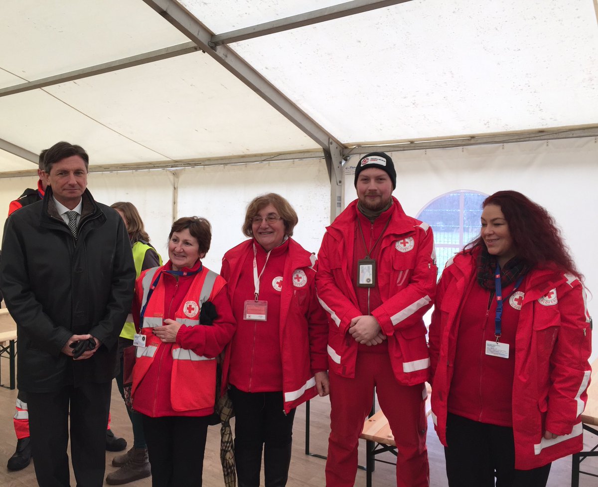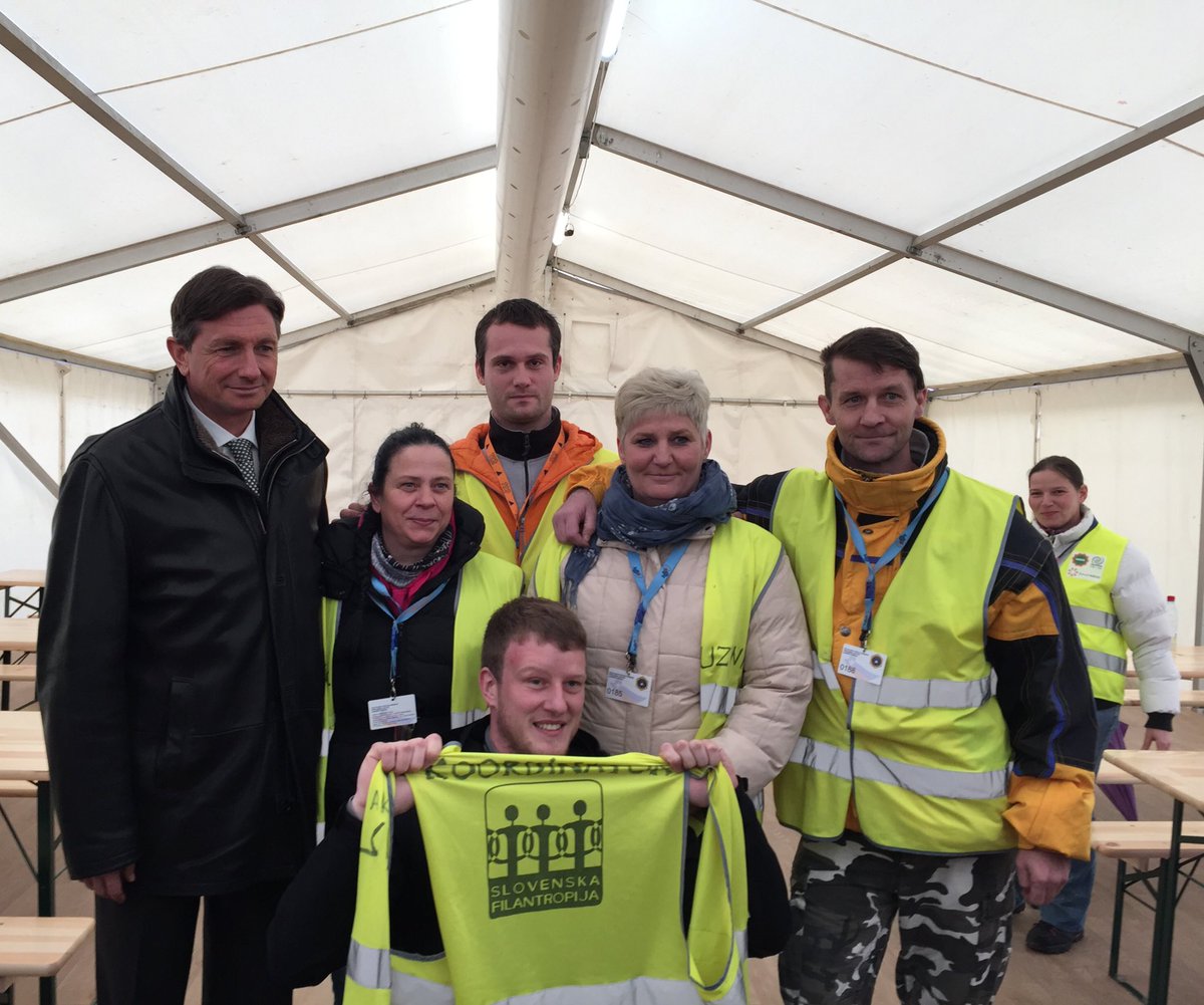 V Dobovi s prostovoljci in drugimi, ki pomagajo pri sprejemu in registraciji ter oskrbi migrantov in beguncev.pic.twitter.com/SXtI2JBeuJ