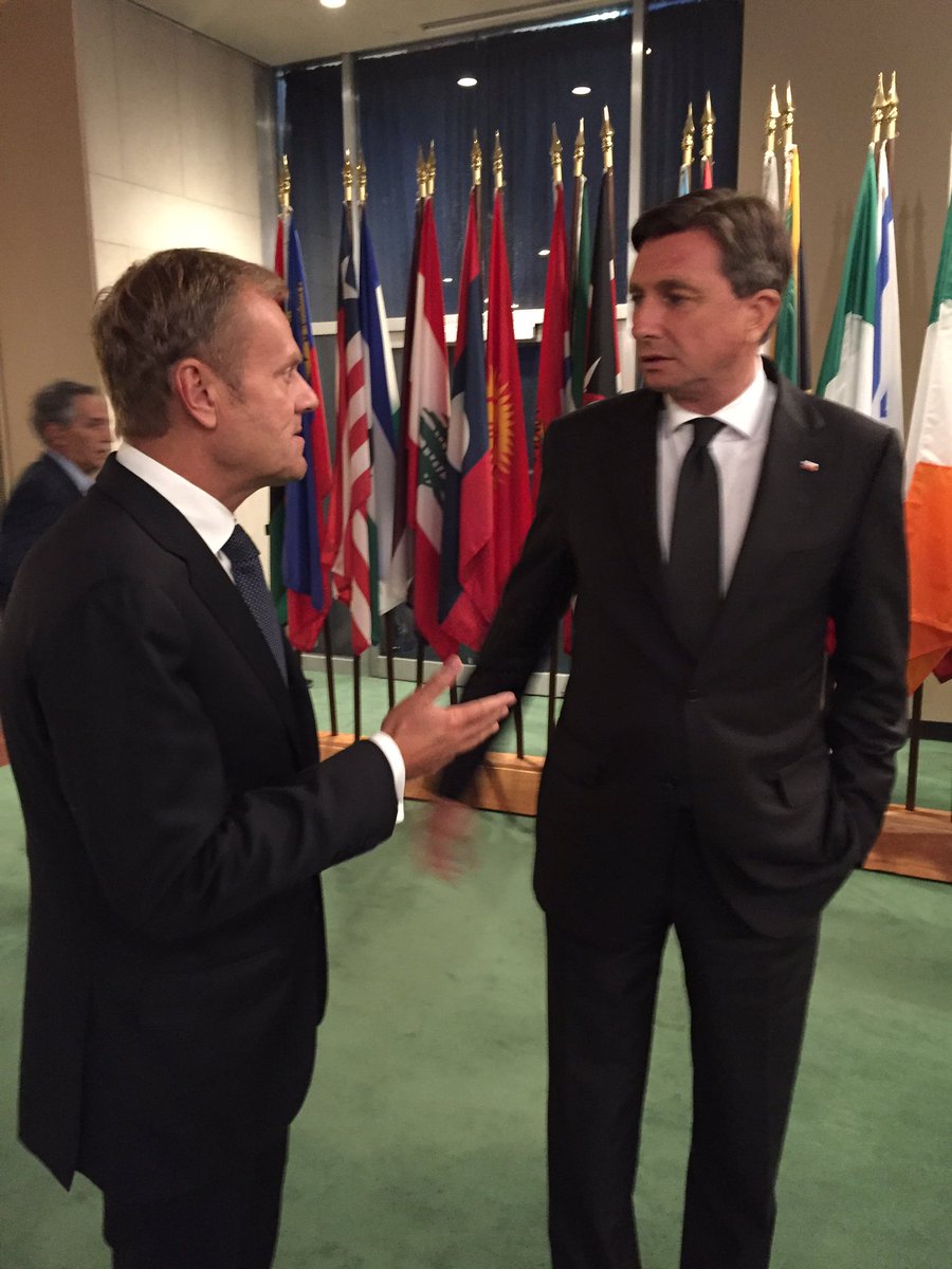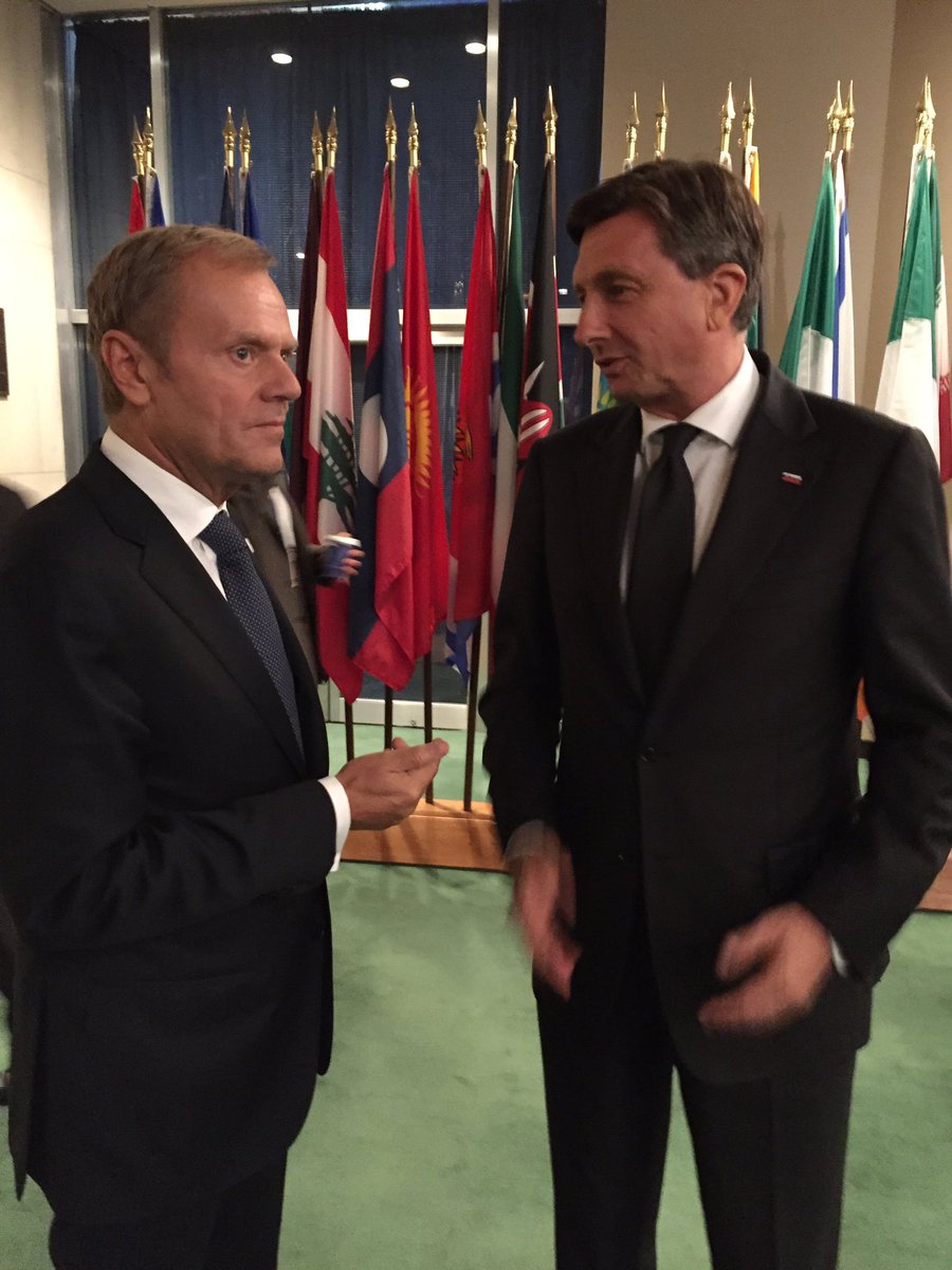 S predsednikom Evoropskega sveta Donaldom Tuskom ob robu Generalne skupščine Organizacije združenih narodov. #UNGA71 @eucopresidentpic.twitter.com/dujjnwQPRm
