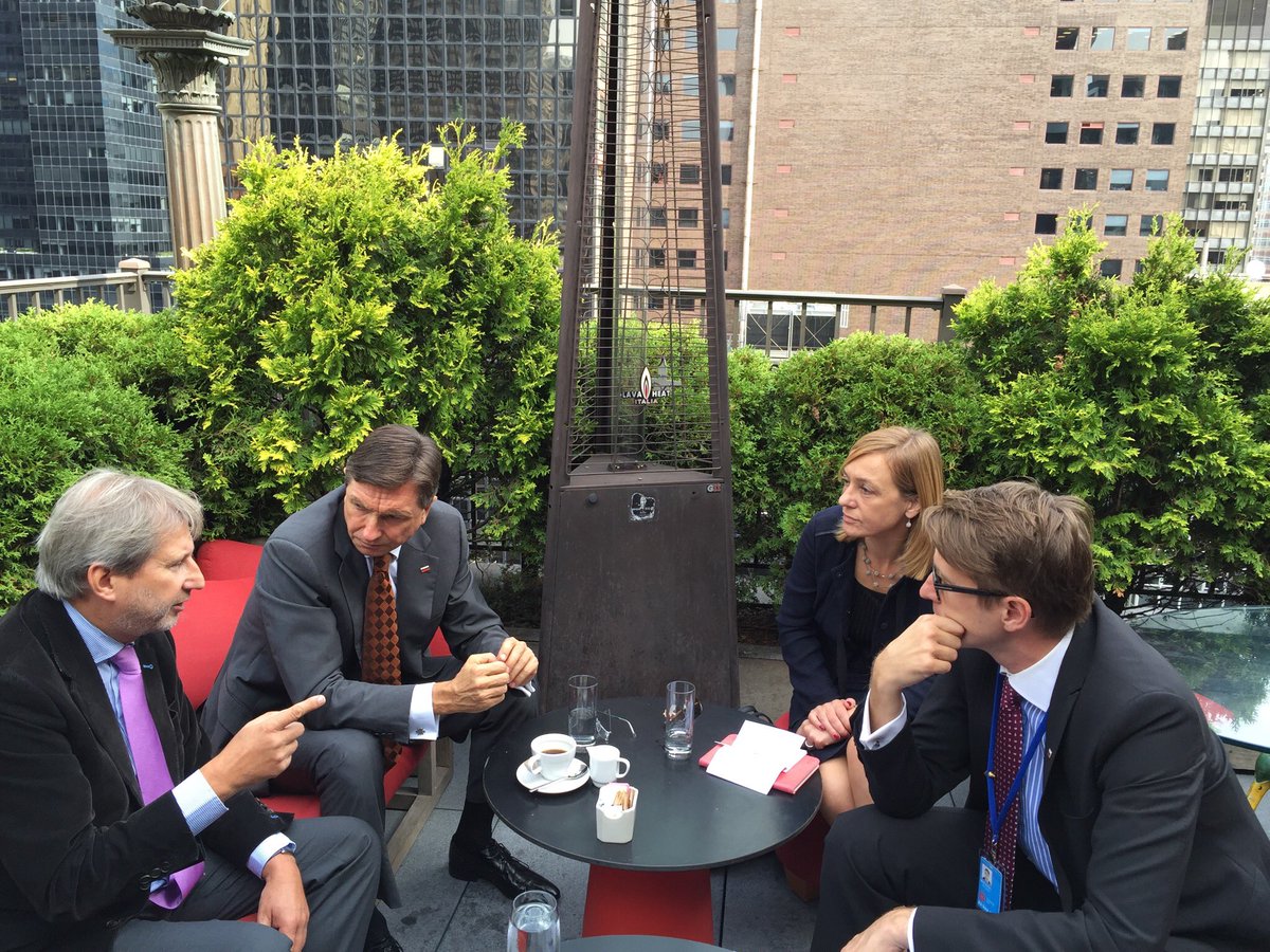 Srečanje predsednika Pahorja z evropskim komisarjem za evropsko sosedsko politiko in širitvena pogajanja Johannesom Hahnom. @JHahnEU #UNGA71pic.twitter.com/pGf01ojCrx