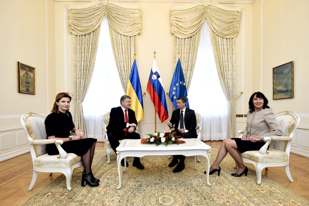 Predsednik Pahor in gospa Pečar danes na uradnem obisku v Sloveniji gostita predsednika Ukrajine Porošenka s soprogo.pic.twitter.com/Ohcijp0yHN
