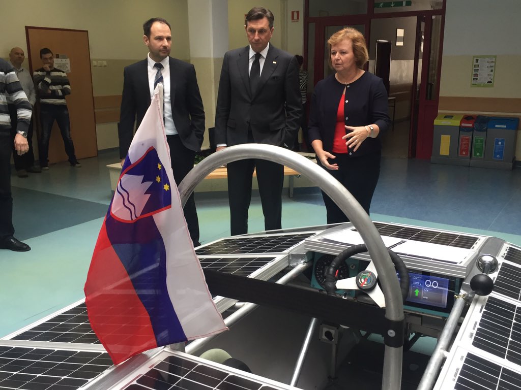 Na obisku v Šolskem centru Krško-Sevnica. Na ogled tudi solarni avtomobil, s katerim so dijaki osvojili 1.mesto na mednarodni dirki.pic.twitter.com/nfmeyH1T0k