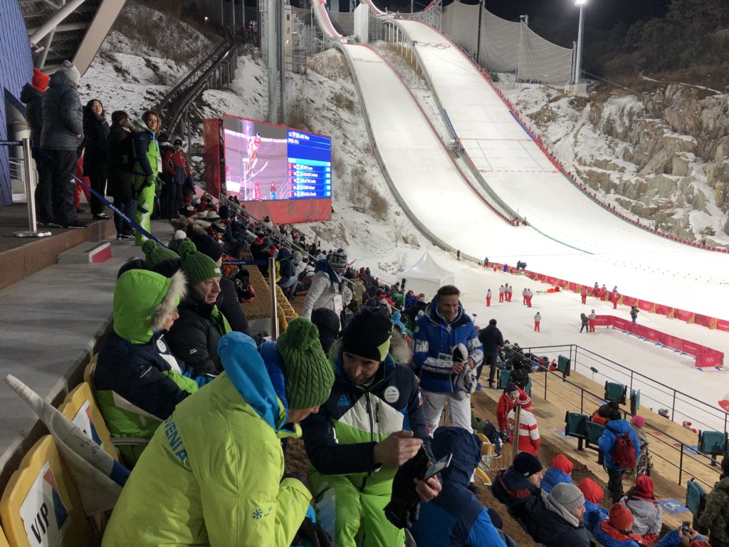 Predsednik republike in Franci Petek preverjata vetrovne razmere #orli #Pyeongyang2018 #skijumpingpic.twitter.com/byoCZbFYV8