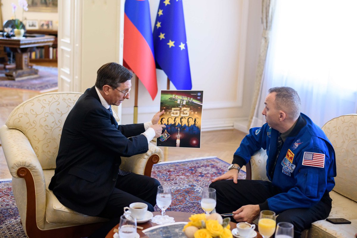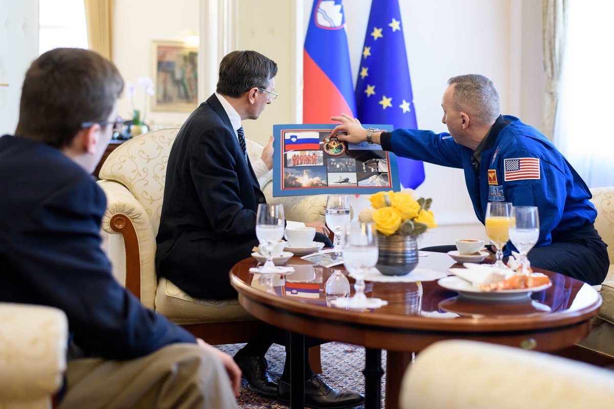 Ameriški astronavt slovenskih korenin Bresnik je predsedniku Pahorju podaril plaketo s slovensko zastavo iz vesolja. http://bit.ly/2p0akug  @AstroKomradepic.twitter.com/0yklm5z2qZ