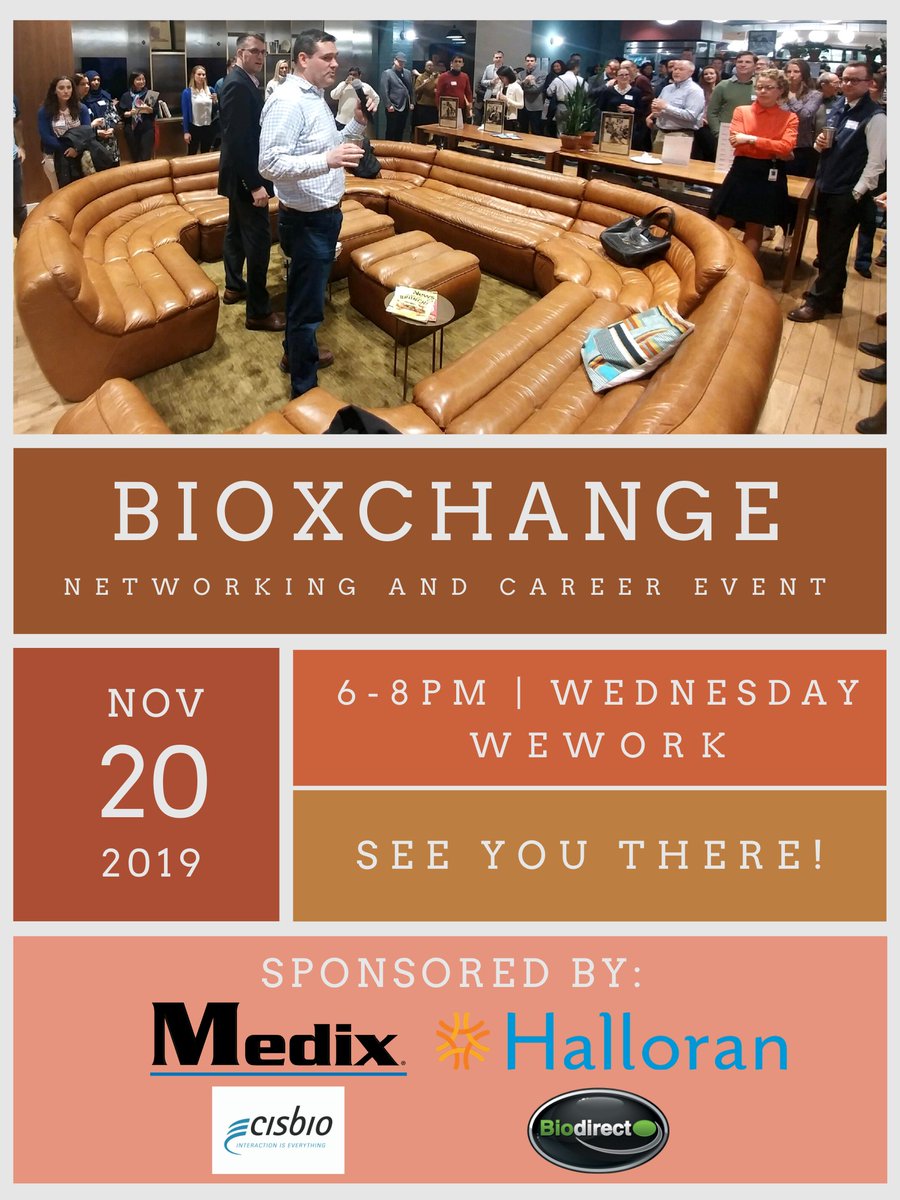 @BosBioXchange is hosting a networking and career event at@WeWork next week in Cambridge. The event is being sponsored by@medixteam@CisbioBioassays@HalloranConsult and@BiodirectUSA Additional details can be found on the following link: https://tinyurl.com/y24trv7h#biotechpic.twitter.com/RPqTlTgSYZ