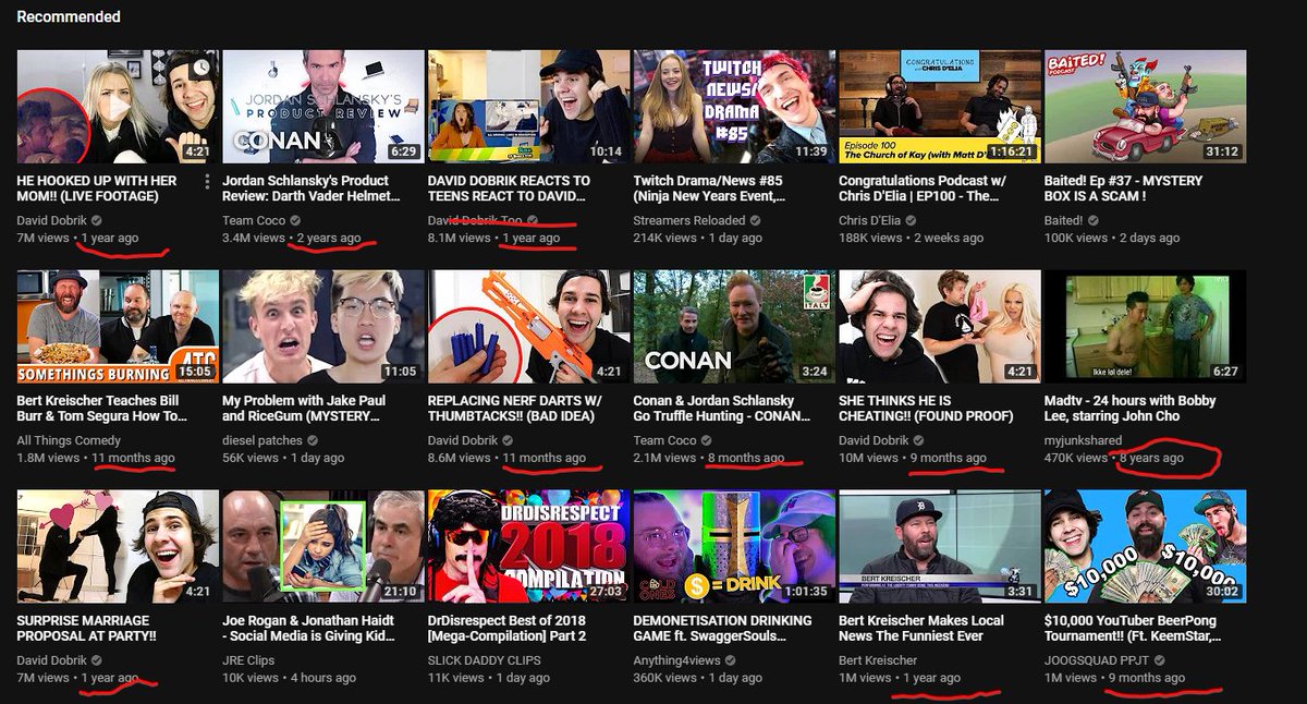 My "Recommended" is showing me videos I've seen and mostly videos from years ago?pic.twitter.com/dh9I4DBwHW