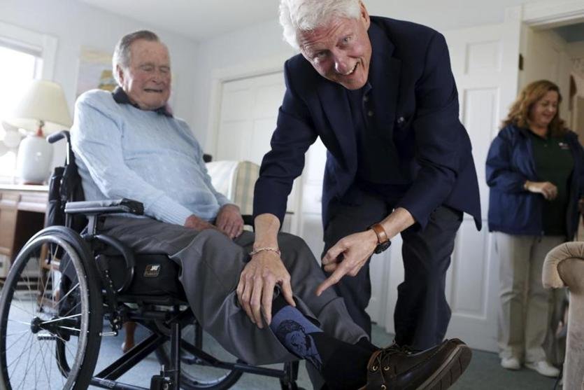 George H.W. Bush showed off his "Bill Clinton socks" during a visit on Monday. http://bos.gl/JRB6dlf pic.twitter.com/L4i4HjrumN