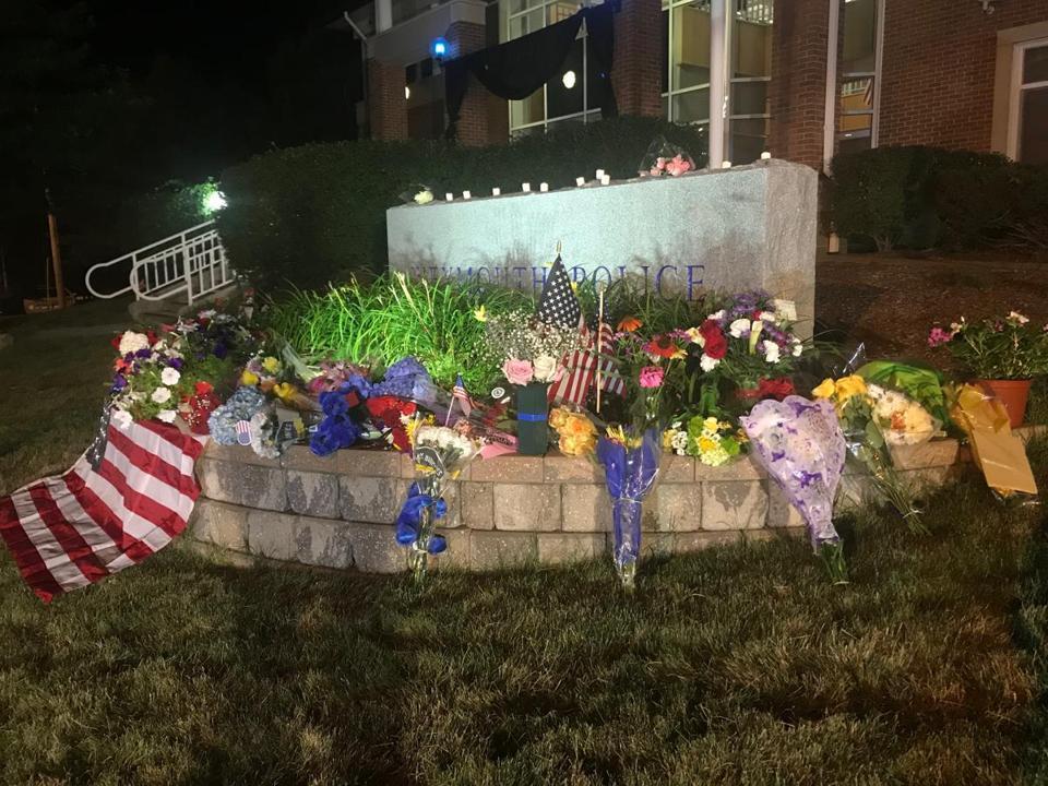 I can understand the sentiment behind leaving the American flag as a tribute, but it's also touching the ground. That's a no-no.