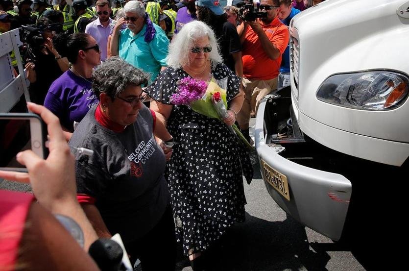 I’ll fix this for you: The mother of a woman killed when a Nazi used a car to plow into a crowd of counterprotestors at a white nationalist rally last summer has visited the site of the attack to mark the anniversary of her daughter’s death.