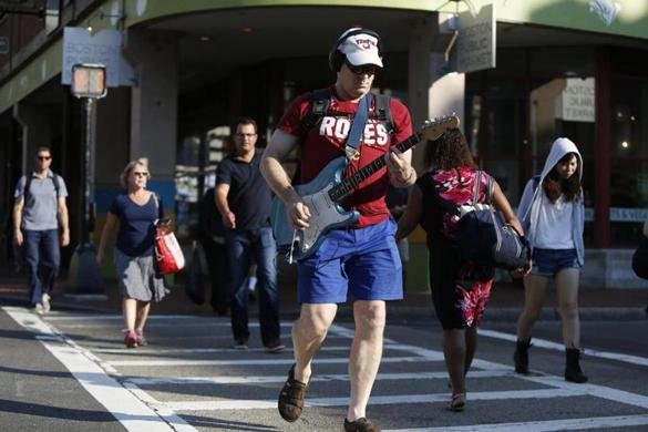 Peter Wolfe has been playing the guitar for years, often while walking from place to place. “It’s a good time to practice. I’m on my walk anyway,” he said. http://bos.gl/4sp2kw2 pic.twitter.com/1IAAmebfMN