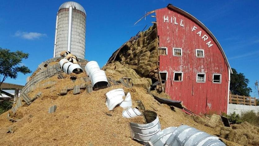 More than a dozen calves were trapped Sunday morning after a silo collapsed on a barn in Lunenburg. http://bos.gl/R0hODVS pic.twitter.com/pAkixhGwIJ