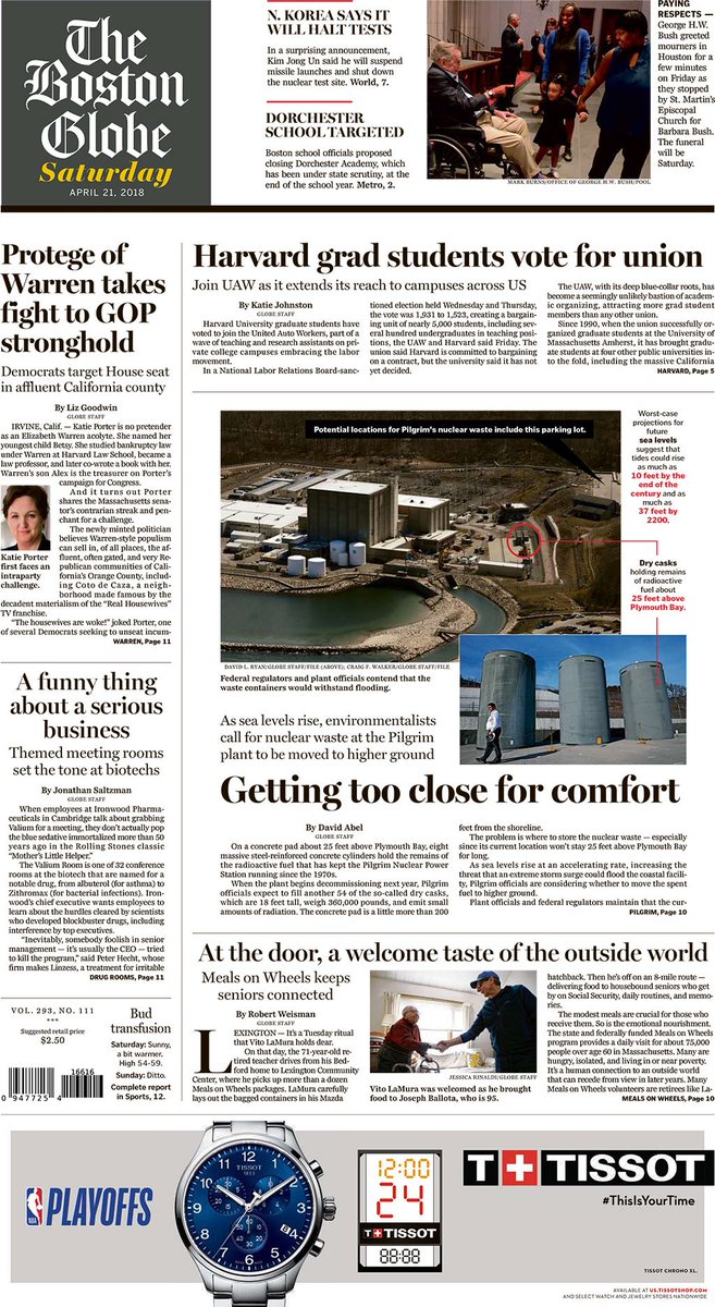 Today's Paper: Harvard grad students vote for union, Meals on Wheels keeps seniors connected, environmentalists want nuclear waste moved, more. http://bos.gl/mp8ggV6 pic.twitter.com/rZxy7KWfaZ