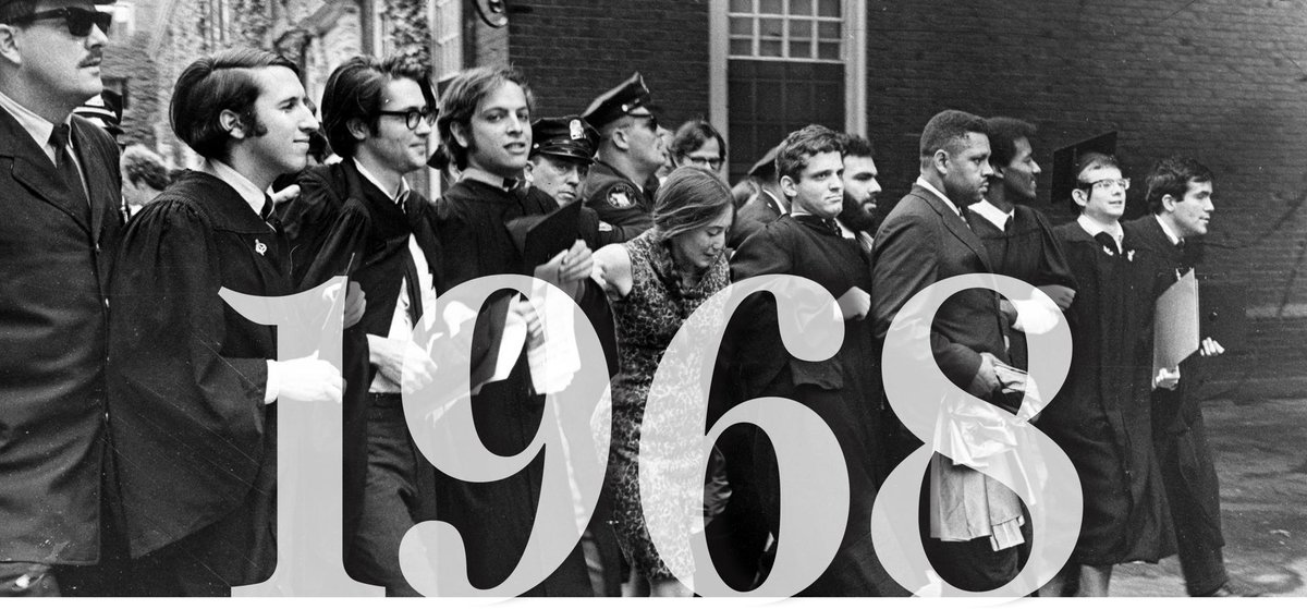 The arc of history was bending toward chaos for the class of 1968, and Harvard was moving awkwardly with it. http://bos.gl/1HQhCr2 pic.twitter.com/AhxazH2zL0