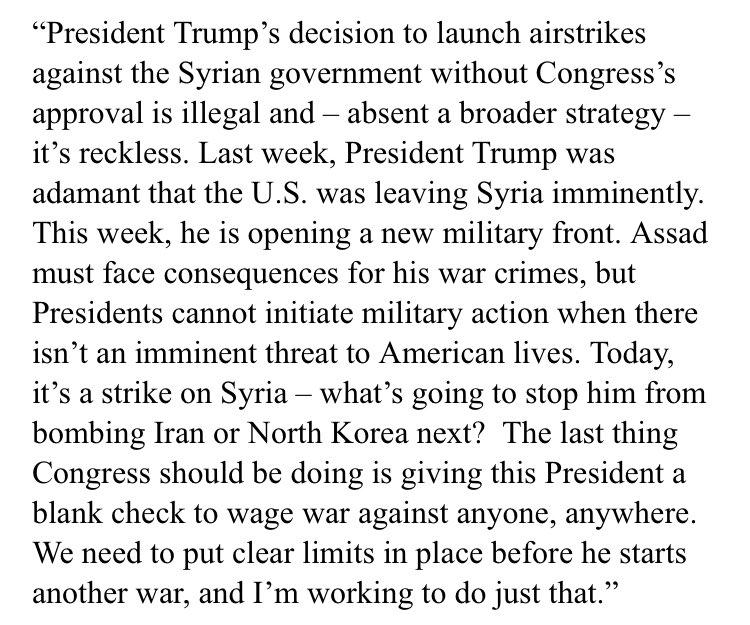 Sen. Tim Kaine, D-Va., chief proponent of Congress’s role in authorizing military action, calls strike “illegal” and “reckless”pic.twitter.com/pCulZPCfIS