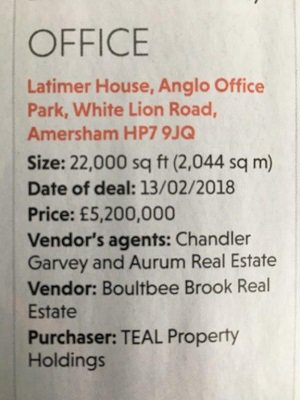 #office disposal Latimer House, Anglo Office Park#Amersham on behalf of@BoultbeeBrooks 22,000 sq ft of#office space, was featured in the National Deals section of last week'spic.twitter.com/yygt3RnUhh