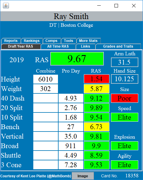 #RAS of the#Lions 2019 draft class. Their class averaged a RAS of 6.33. They had 5 players score in elite range, over 8.00. They had 3 players score below 5.00. The rest fell inbetween.pic.twitter.com/DsNGNdgWIw