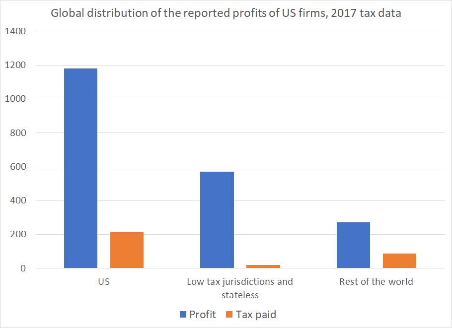 The 2017 IRS data really paints a remarkable picture. About a quarter (a bit more actually) of the total profits of U.S. firms are reported in low-tax jurisdictions (I assume stateless income is in a low tax jurisdiction) https://www.irs.gov/statistics/soi-tax-stats-country-by-country-report … 2/xpic.twitter.com/GZR2SOzv66