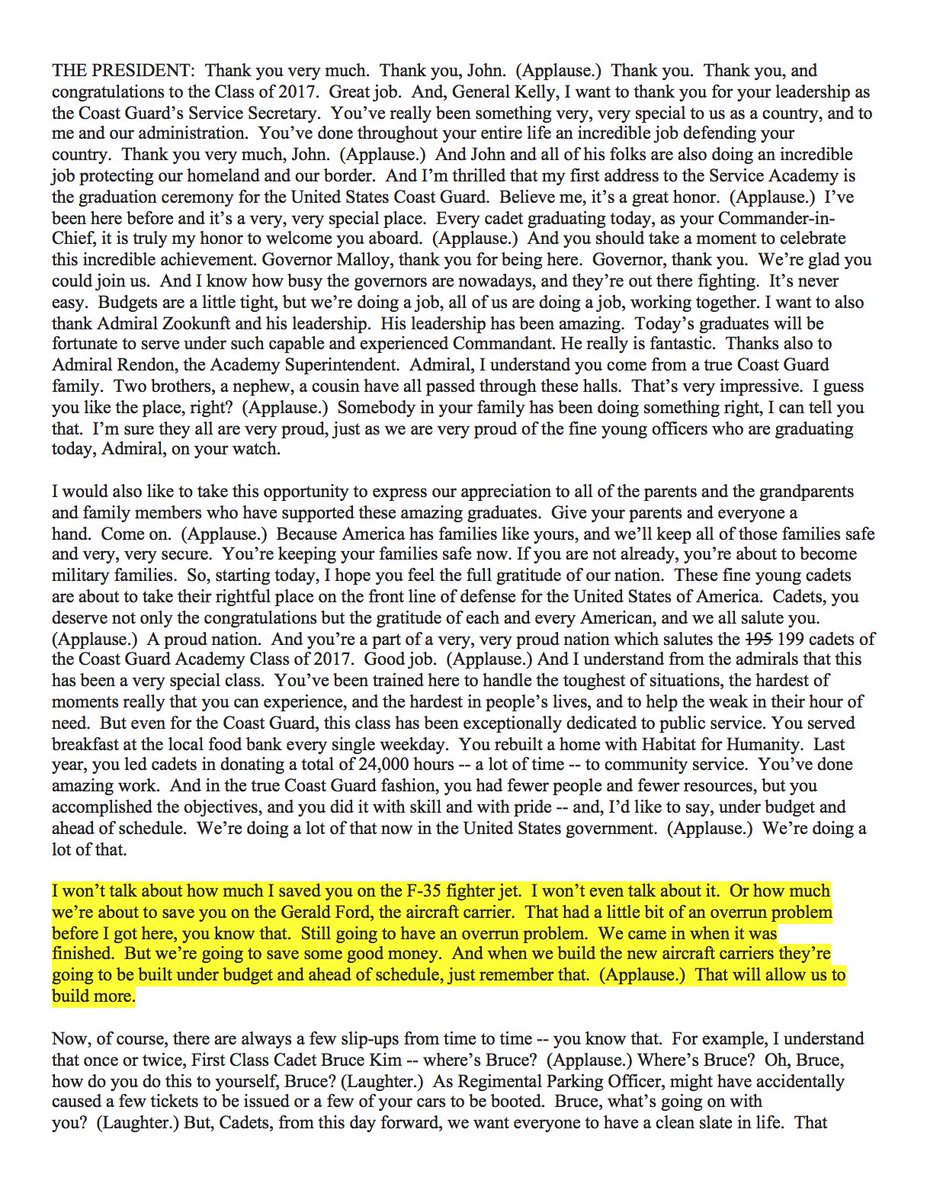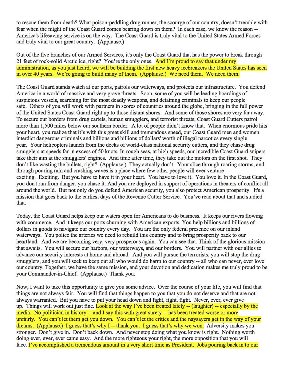 I highlighted the parts of Trump's Coast Guard Academy grad speech in which he talks about his grievances, his accomplishments or his planspic.twitter.com/ar9ZLgJ0Za