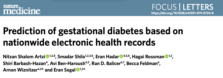 @NatureMedicine uses data from >500,000 pregnancies to derive an algorithm for predicting gestational diabetes (GDM) We achieve accurate predictions even at pregnancy initiation https://www.nature.com/articles/s41591-019-0724-8 …pic.twitter.com/tpzrJaXYWI