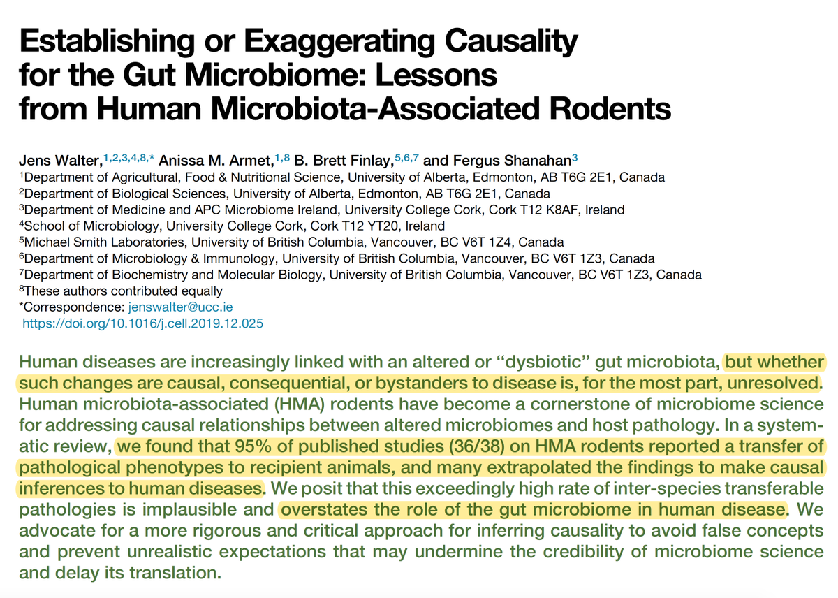 #microbiome causality. https://www.cell.com/action/showPdf?pii=S0092-8674%2819%2931387-X … Excellent, objective appraisal#openaccess@CellCellPress by Jens Walter, Anissa Armet@UAlberta@UofAResearch@FinlayLab@UBC Fergus Shanahan@UCC@CellPressNewspic.twitter.com/IrUSbcw6HY