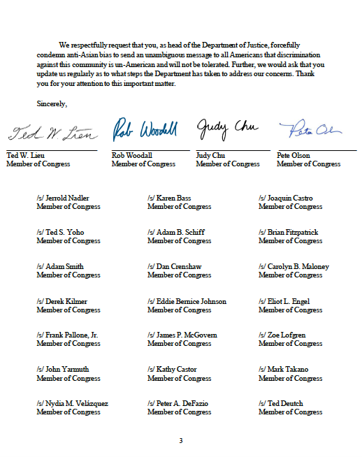 Asian Americans have experienced harassment, violence & discrimination due #COVID19. 150 bipartisan MoCs led by @RepTedLieu @RepRobWoodall @RepJudyChu @RepPeteOlson are urging AG Barr to condemn this xenophobia & provide updates @TheJusticeDept is taking to combat this behavior.pic.twitter.com/bkh2wnhEoO
