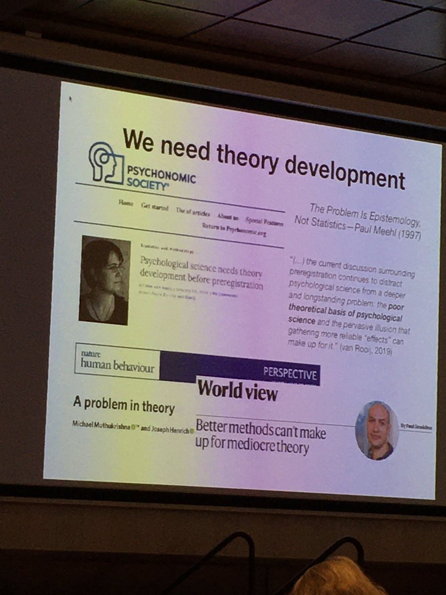 @IrisVanRooij that we are ignoring a very big problem in cognitive science right now: theory development. None of us get taught to be theorists, and most of us just muddle through - she suggests theory development should be a taught course.@BrainCognNL#NVP2019pic.twitter.com/pNmhakSUUl