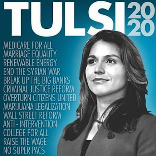 Someone backed by big $/infamously anti-progressive DailyKos? Tulsi's the 2nd most popular politician in HI behind Obama, won her seat much like AOC,w/ polls having her 45% behind. Record speaks for itself. No corp/PAC $. Pls don't fall for the propaganda. http://tulsigabbard.org pic.twitter.com/2sE1AWwYlE