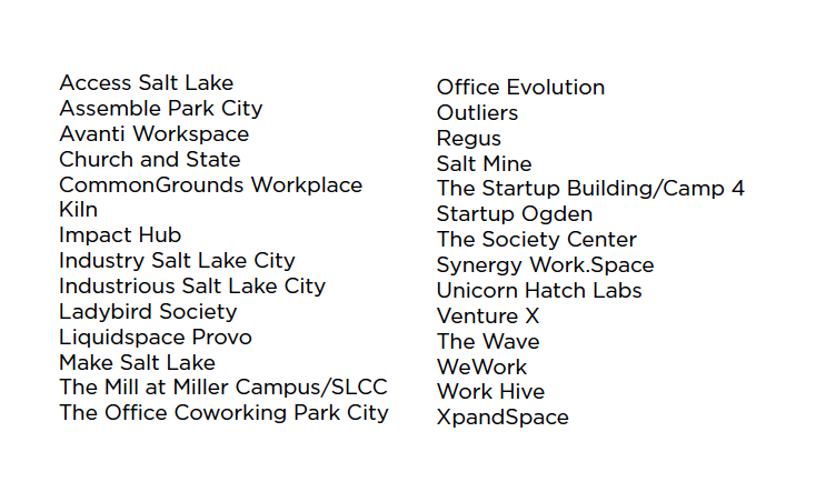 EDCUtah community - We're putting together a list of co-working spaces in Utah. While we've done a lot of searching online, we realize this is a fast-changing market. Who have we missed in the list below? #TeamUtah #coworkingspace #coworkingpic.twitter.com/oFtP2UhXVJ