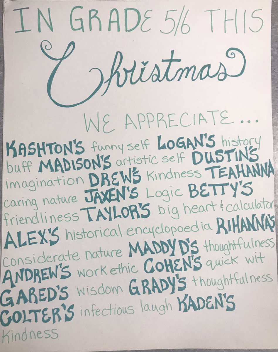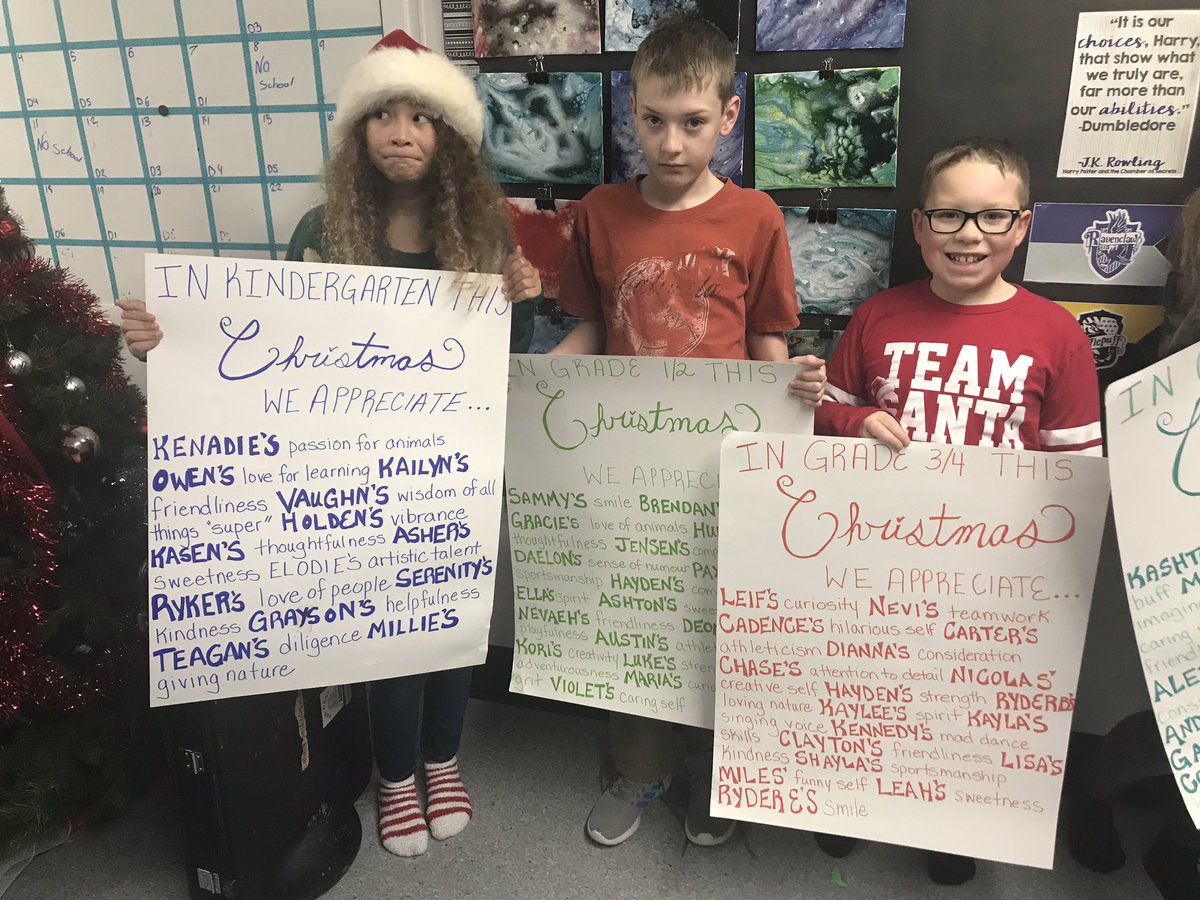 Spartans, Gr 1-8, spread Christmas Cheer to local businesses, family & friends. They made sugar cookies, hot chocolate, homemade cards, & notes of