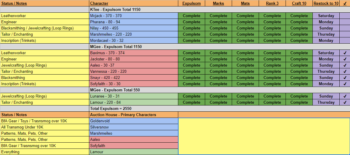 And last tweet lol. Then I have 2 spreadsheets to keep track on Uncanny Gear. (And some other things) Basically I prepared a TON in December to make gold and then the rest of 2020 is easy mode. (Until Shadowlands )pic.twitter.com/iVOV1aYLYu