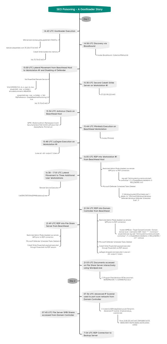 The DFIR Report researchers describe an intrusion using Gootloader as initial access vector via an SEO poisoning campaign. The threat actors then used RDP, WMI, Mimikatz, Lazagne, WMIExec & SharpHound to gain access to sensitive documents. https://thedfirreport.com/2022/05/09/seo-poisoning-a-gootloader-story/ …pic.twitter.com/8FIQbetFmH
