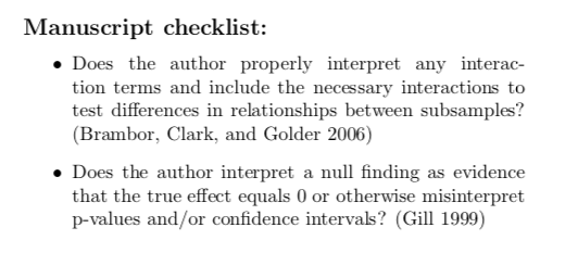 from my peer review checklist - many are of this variety …https://thepoliticalmethodologist.files.wordpress.com/2016/02/tpm_v23_n1.pdf …pic.twitter.com/8znXXKnMJB