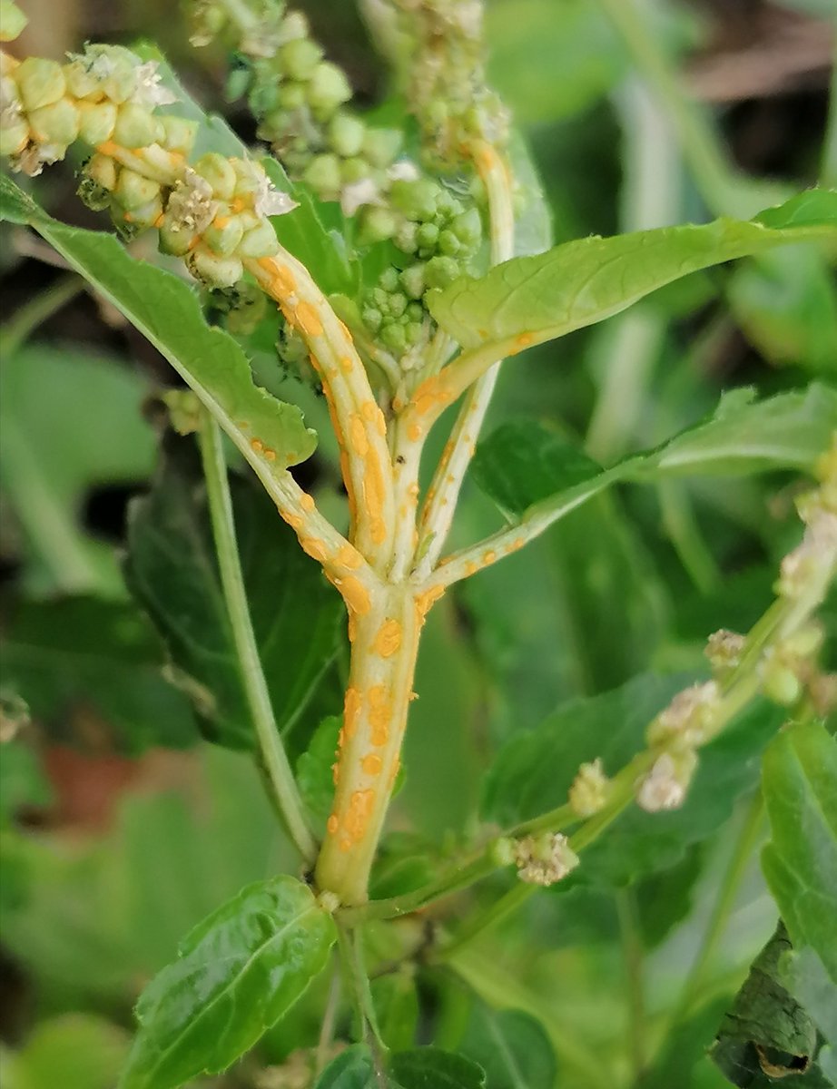This bright orange rust fungi (Melampsora populnea?) on Annual Mercury caught my eye near Dublin Port this week for