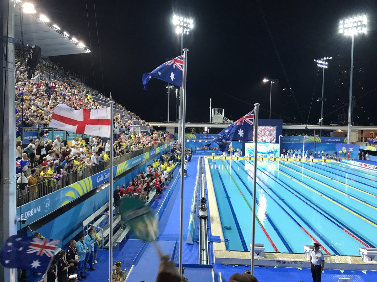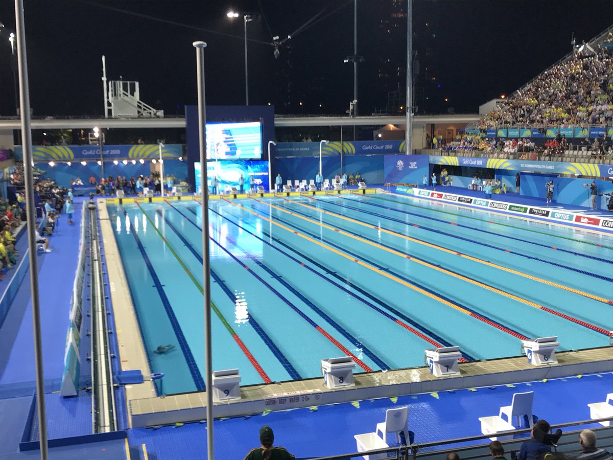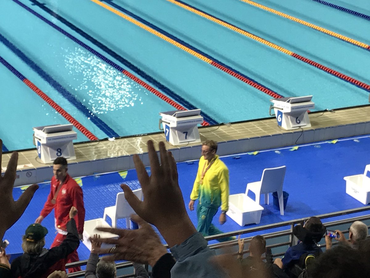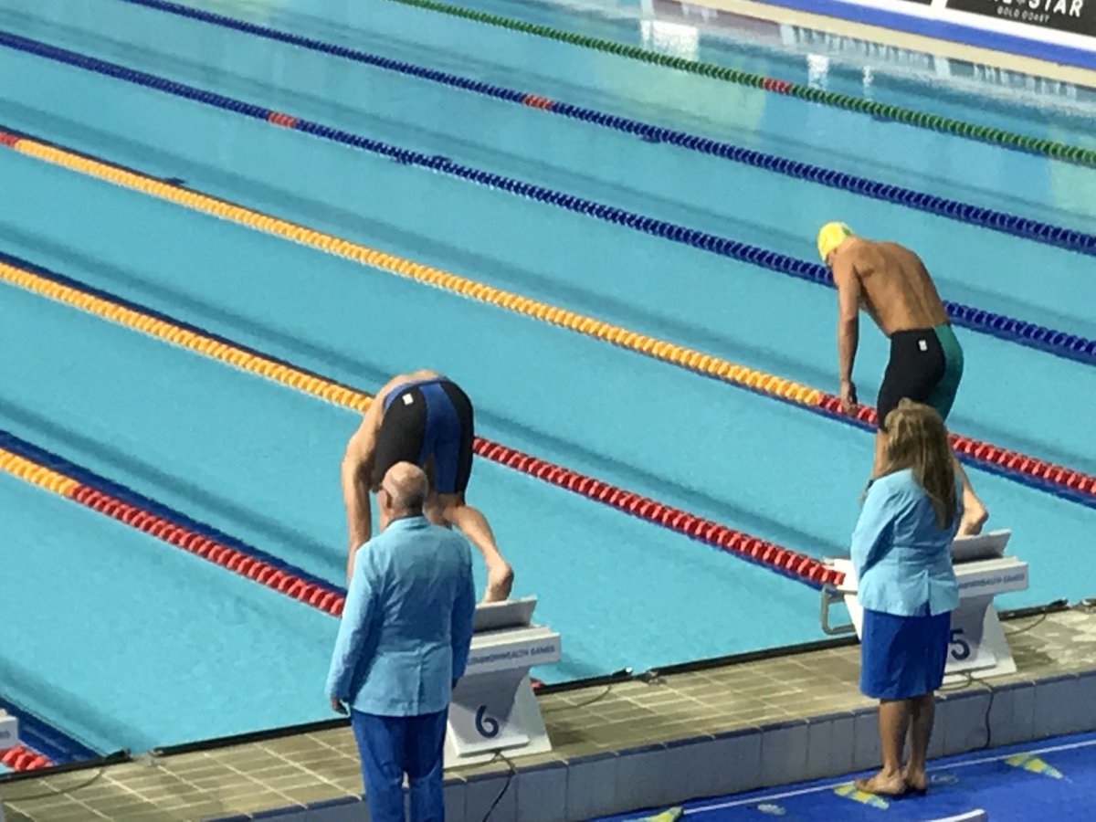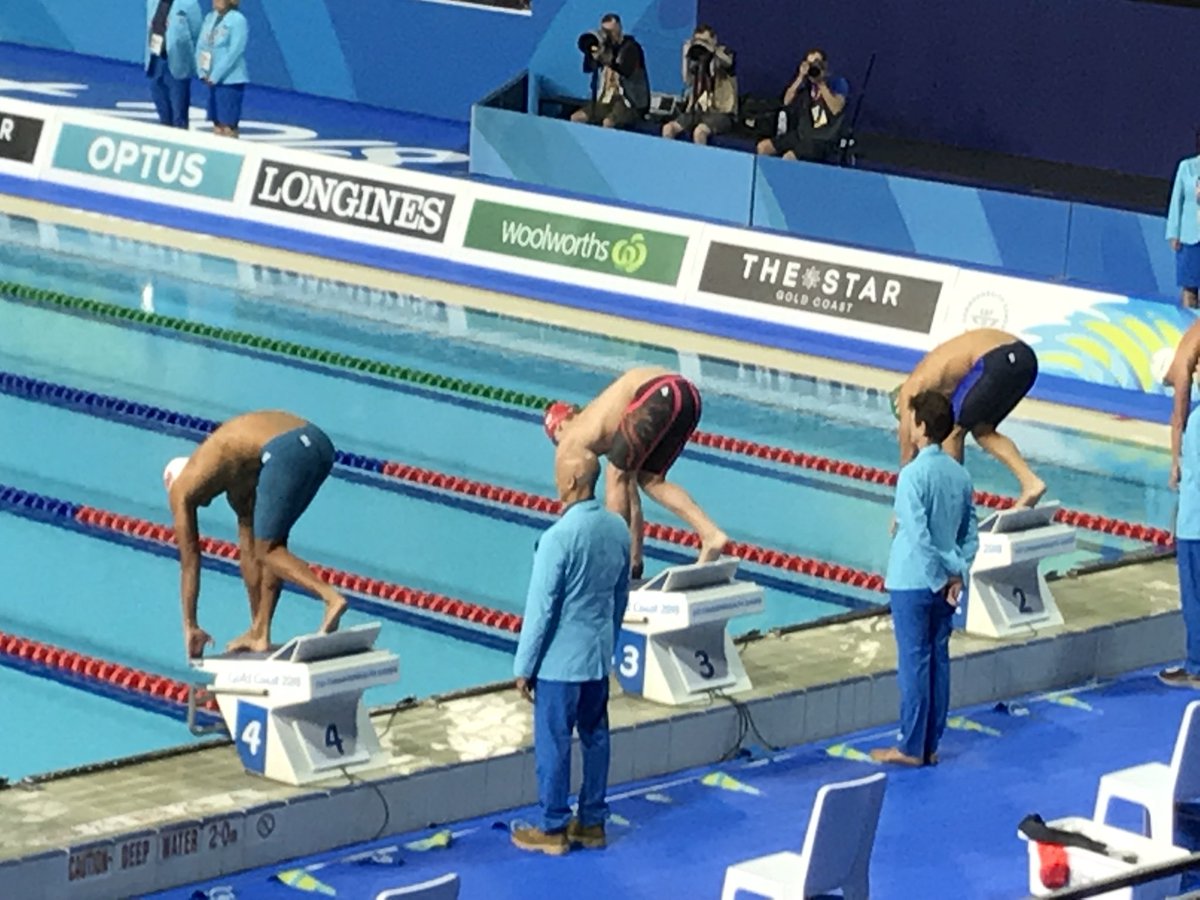 @_mackhorton giving it a crack! 400m freestyle final!#GC2018