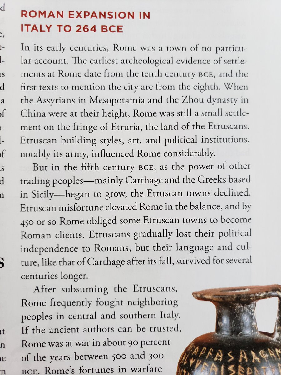 I'm also not super thrilled by the description of Rome sitting on the edge of Etruria while entirely leaving out, you know, Latium. I assume there's a desire to really bolt Rome on to a previous section on the Etruscans, but you know, Latin cultural influence was big in Rome too