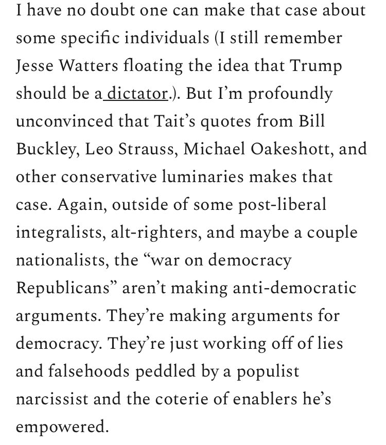Jonah Goldberg responded in part to my essay on conservatism and democracy and I have a few points in reply.