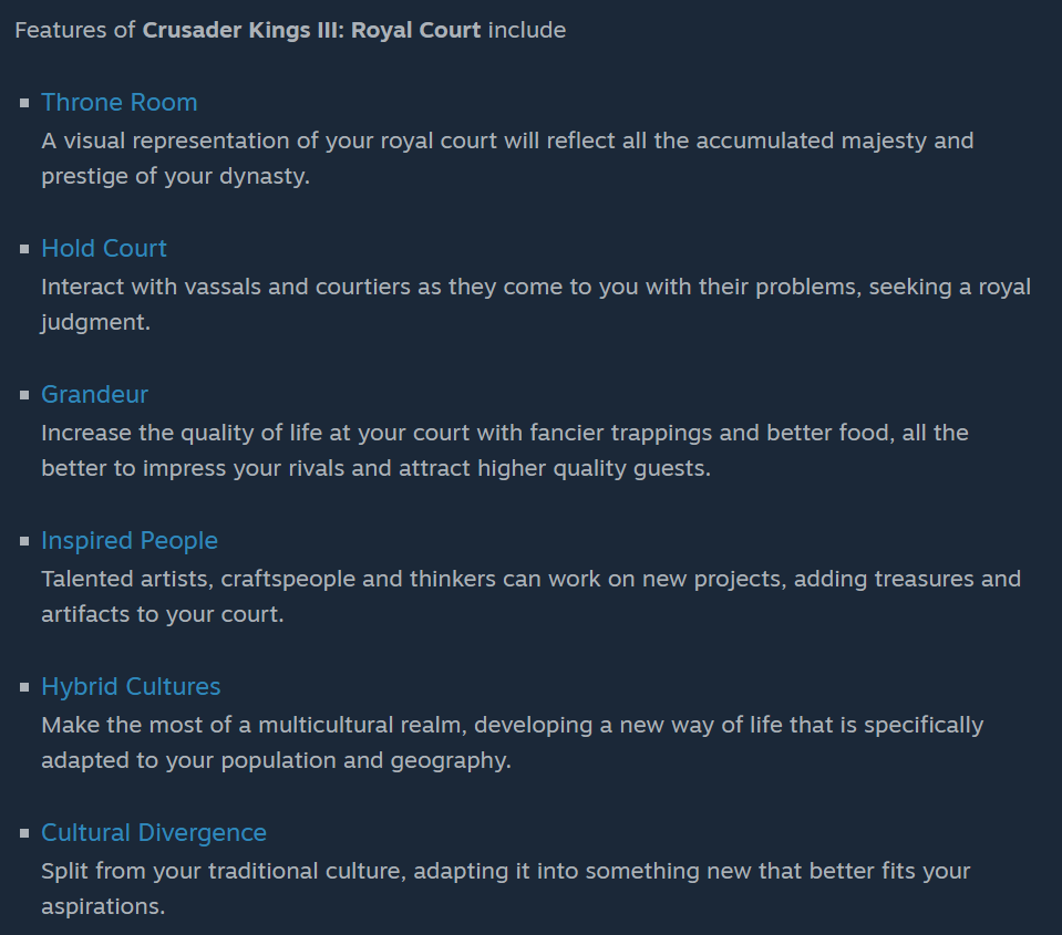 This may be coming true, as the upcoming update is promising a Royal Court as its central feature, where the monarch will be receiving and judging petitions from vassals and residents.pic.twitter.com/64C4nr08Pi