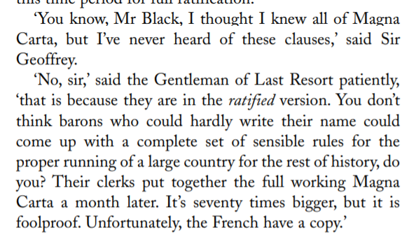 That is both a frustrating misunderstanding of what Magna Carta was and a frustrating misunderstanding of the education level of the baronial class in England in the 1200s. But the point of people having staff is valid, then as now.