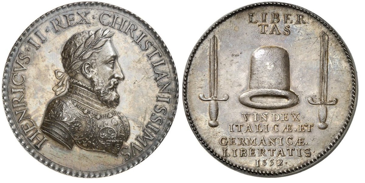 There's something a wee bit hypocritical about this coin of Henry II and his bragging about his efforts against Charles V https://en.wikipedia.org/wiki/Treaty_of_Chambord … https://twitter.com/profyarrow/status/1467591113674530822 …pic.twitter.com/KiTQQoFHNg