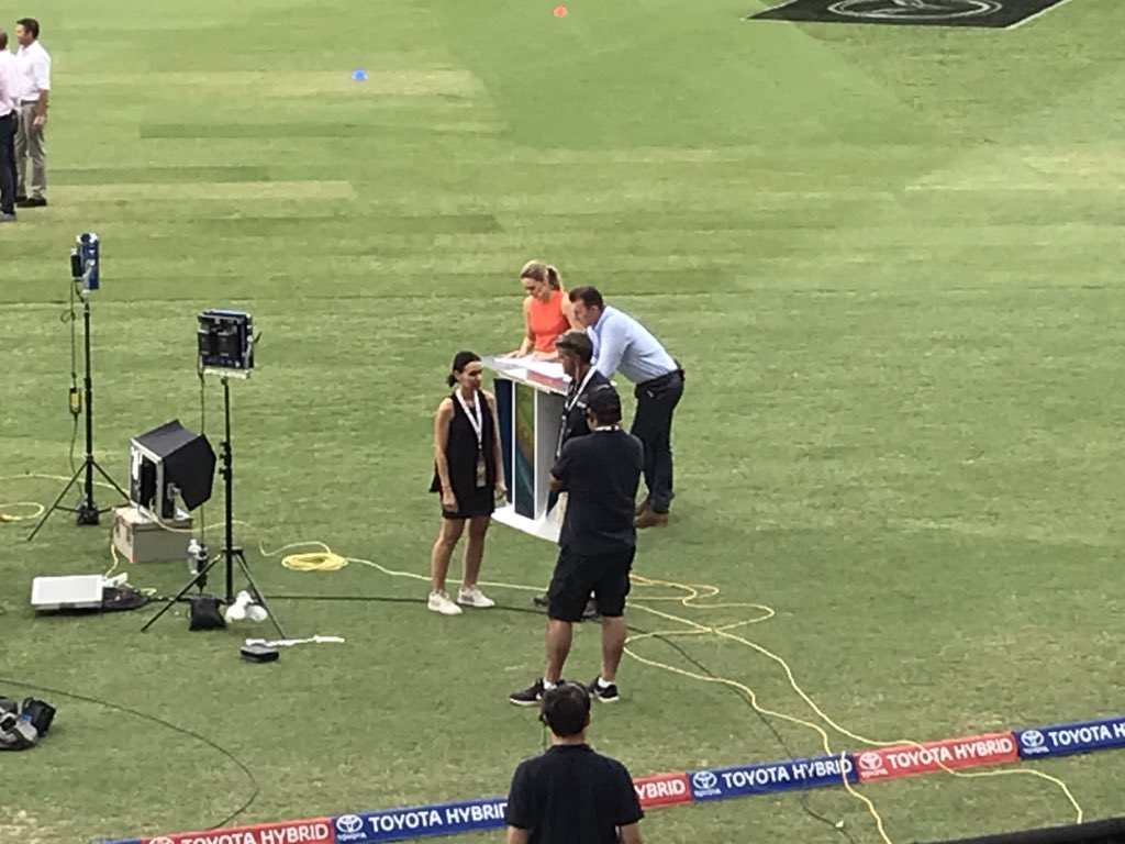 @nswpssa1 Girls and Boys Cricket teams being presented with their medals by@BrettLee_58 at the SCG. Proud of this girl - highest run scorer in the National Championships scoring 59 in the final.pic.twitter.com/5HH6vuusj9