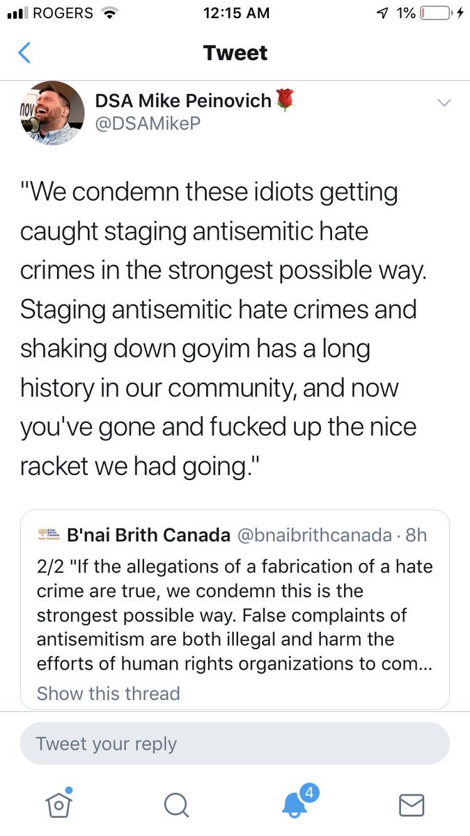 @bnaibrithcanada pointed out, by being dishonest about the incident in Winnipeg, they give validity and power to#antisemitism and those that are always waiting for an opportunity to attack Jews. In short, don't give real weapons to those who hate plenty with fake weapons.pic.twitter.com/n6QoHHKD7r